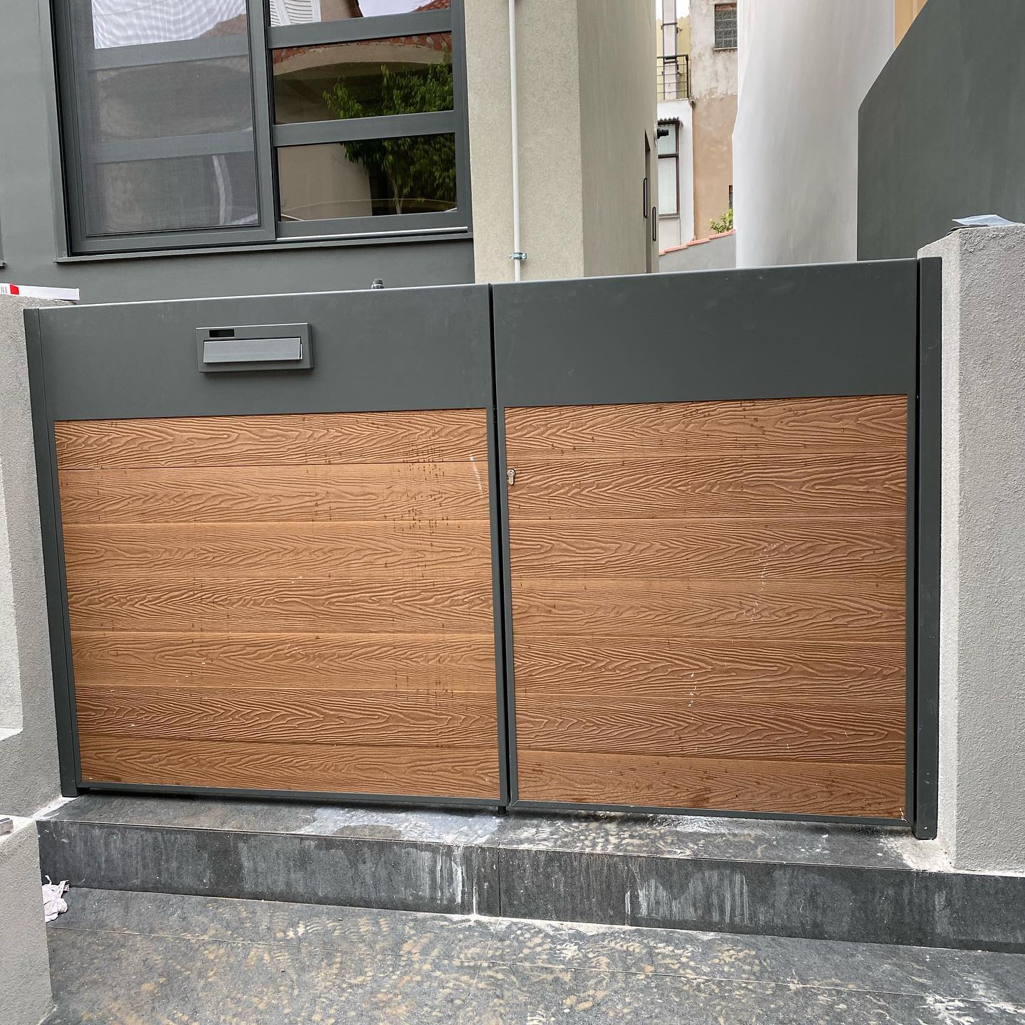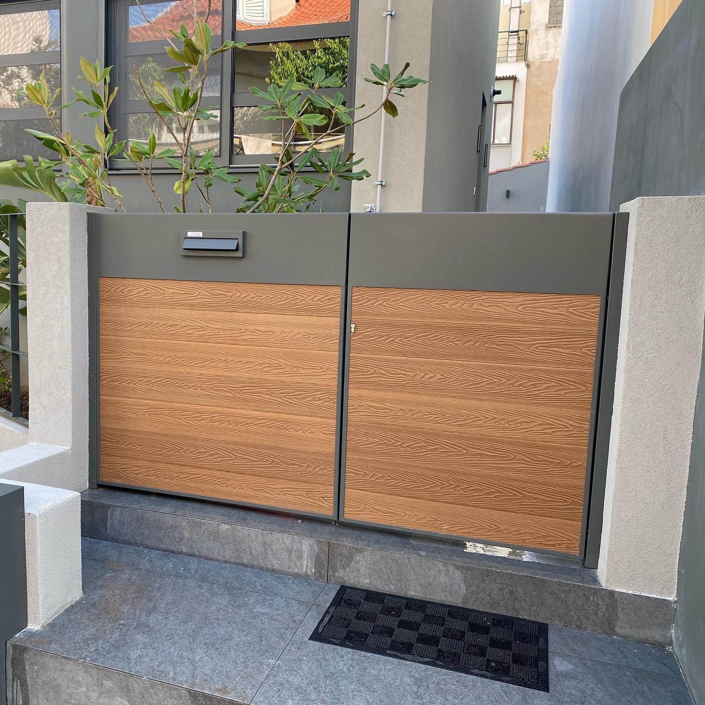 Gates are made of iron, stainless steel, or a combination of materials.